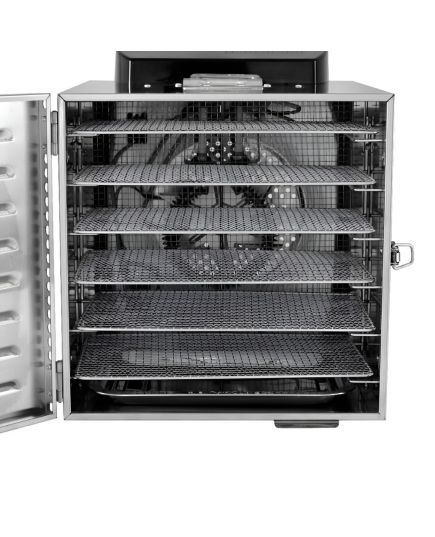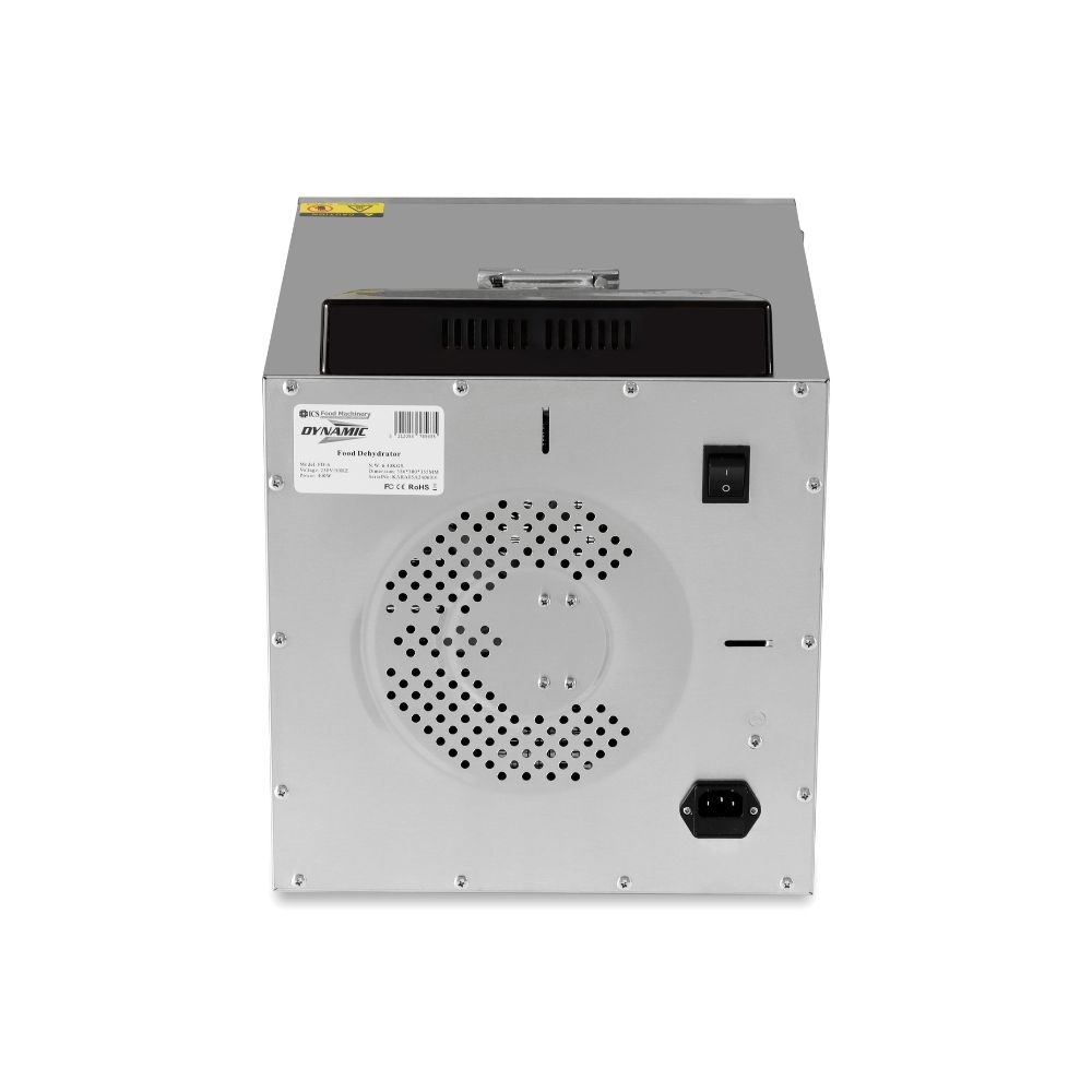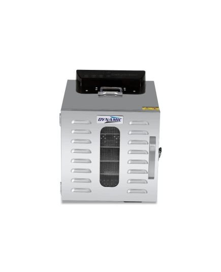 Ο αποξηραντής τροφίμων είναι μια συσκευή αποξήρανσης σε ένα εύρος από 30°C έως 90°C, φρούτα, λαχανικά, μανιτάρια και βότανα. Κατά την αποξήρανσή, αφαιρείται το νερό/υγρασία που περιέχεται στην τροφή και τα τρόφιμα αφυδατώνονται. Έτσι, διατηρούνται τα θρεπτικά συστατικά ενός φρούτου ή λαχανικού εάν αποθηκευτεί σωστά σε αεροστεγή γυάλινα βάζα. Είναι ιδανικό για όμορφα και υγιεινά σνακ όπως φρούτα (αχλάδια, δαμάσκηνα, βερίκοκα, μπανάνες κ.λπ.),σταφίδες, αποξηραμένα λαχανικά για σούπες, αποξηραμένες ντομάτες, αποξηραμένα βότανα, τσάι από βότανα (μέντα, χαμομήλι κλπ.), αποξηραμένα μανιτάρια για σούπες και γεύματα, αποξηραμένα πορτοκάλια για διακόσμηση, αποξηραμένους σπόρους κολοκύθας κ.α. Οι αποξηραντές της σειράς Dynamic διαθέτουν πίνακα οθόνης αφής για ψηφιακό έλεγχο. Η λαβή της πόρτας μπορεί να είναι πλαστική ή αλουμινένια και η συσκευή είναι ανοξείδωτη SUS304. Συνοδεύεται από 6 δίσκους.
