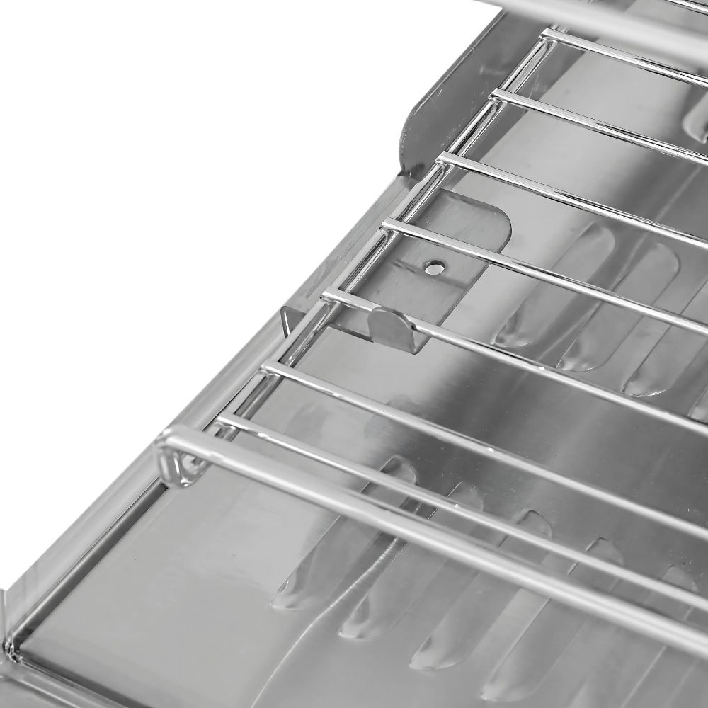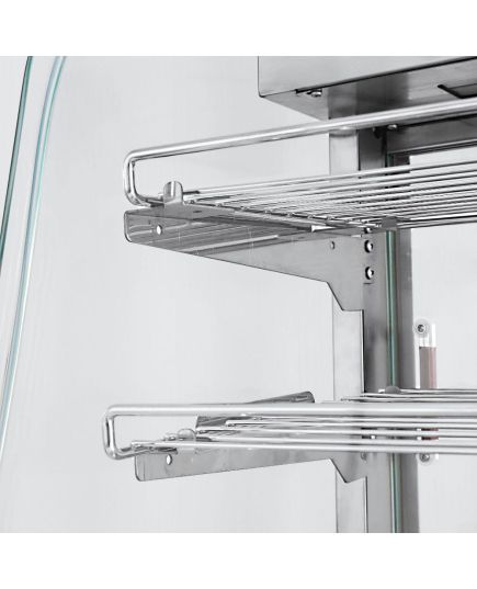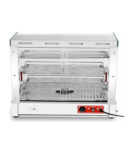 Θερμαινόμενη επιτραπέζια βιτρίνα με ρυθμιζόμενα ράφια από ανοξείδωτο ατσάλι, 2 συρόμενες πόρτες και εξαιρετικά διαφανές σκληρυμένο γυαλί για εύκολη πρόσβαση και ορατότητα του προϊόντος. Ο ρυθμιζόμενος έλεγχος θερμοκρασίας και τα ειδικά σχεδιασμένα διαφράγματα θέρμανσης, εξασφαλίζουν ομοιόμορφη κατανομή και της θερμότητας. Κατάλληλο για καντίνες, παντοπωλεία, καφετέριες, πλοία και εστιατόρια self-service. Ο σωλήνας θέρμανσης από ανοξείδωτο ατσάλι παρέχει ταχύτερη θέρμανση ενώ η δομή Antirust SS201 εξασφαλίζει μεγαλύτερη διάρκεια ζωής. Τα αντιολισθητικά πόδια από καουτσούκ εμποδίζουν την ολίσθηση. Διαφανές σκληρυμένο γυαλί με μεγάλη αντοχή σε υψηλή θερμοκρασία και σε κρούση. Ξεχωριστά από τη θερμοκρασία, εύκολος έλεγχος εσωτερικού φωτισμού με ανεξάρτητο διακόπτη. Συρόμενες πόρτες με 3 σταθερά ράφια, φωτισμός LED και χειροκίνητος ρυθμιστής θερμοκρασίας με ένδειξη. Σύστημα θέρμανσης με αντίσταση.