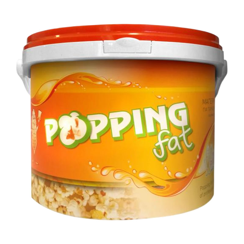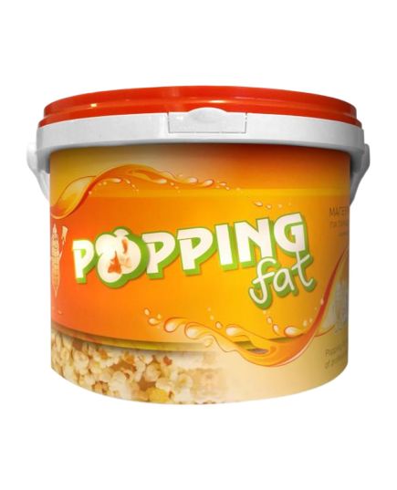 Διακρίνεται για τον χαμηλό καπνισμό του κατά τη θερμική επεξεργασία και δεν αφήνει καμμένα λίπη στην κατσαρόλα της μηχανής του ποπ κορν. Το “POPPING FAT” αποτελεί την πιο δημοφιλή συσκευασία καθώς απευθύνεται σε χρήστες που διαθέτουν μεσαίας και μικρότερης δυναμικότητας μηχανήματα ποπ κορν χωρίς δοσομετρική αντλία λαδιού. Στην περίπτωση αυτή, το βούτυρο για την παρασκευή ποπ κορν πρέπει να το ρίξει ο ίδιος o χρήστης με το χέρι εντός της κατσαρόλας του μηχανήματος.