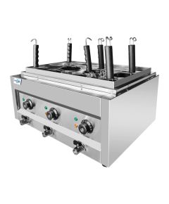 Στην Ecofrost προσφέρουμε επαγγελματικές μακαρονιέρες (pasta cookers) υψηλής απόδοσης, σχεδιασμένες για να καλύπτουν τις ανάγκες των πιο απαιτητικών εστιατορίων. Το σωστό βράσιμο των ζυμαρικών απαιτεί σταθερή θερμοκρασία και μεγάλη ισχύ, και οι συσκευές μας εξασφαλίζουν ότι κάθε μερίδα θα σερβίρεται "al dente", ακριβώς όπως πρέπει.