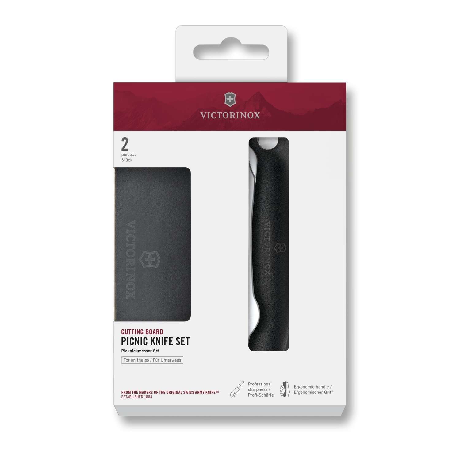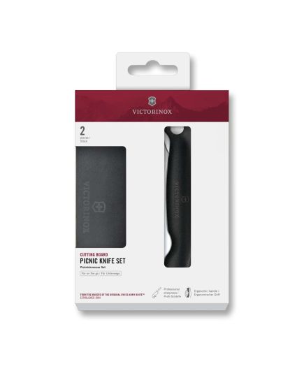 50780 (code) Επιφάνεια κοπής και μαχαίρι οδοντωτό αναδιπλούμενο 11 εκατ. με μαύρη λαβή σετ 2 τμχ. Swiss Classic 6.7191.F3 Victorinox