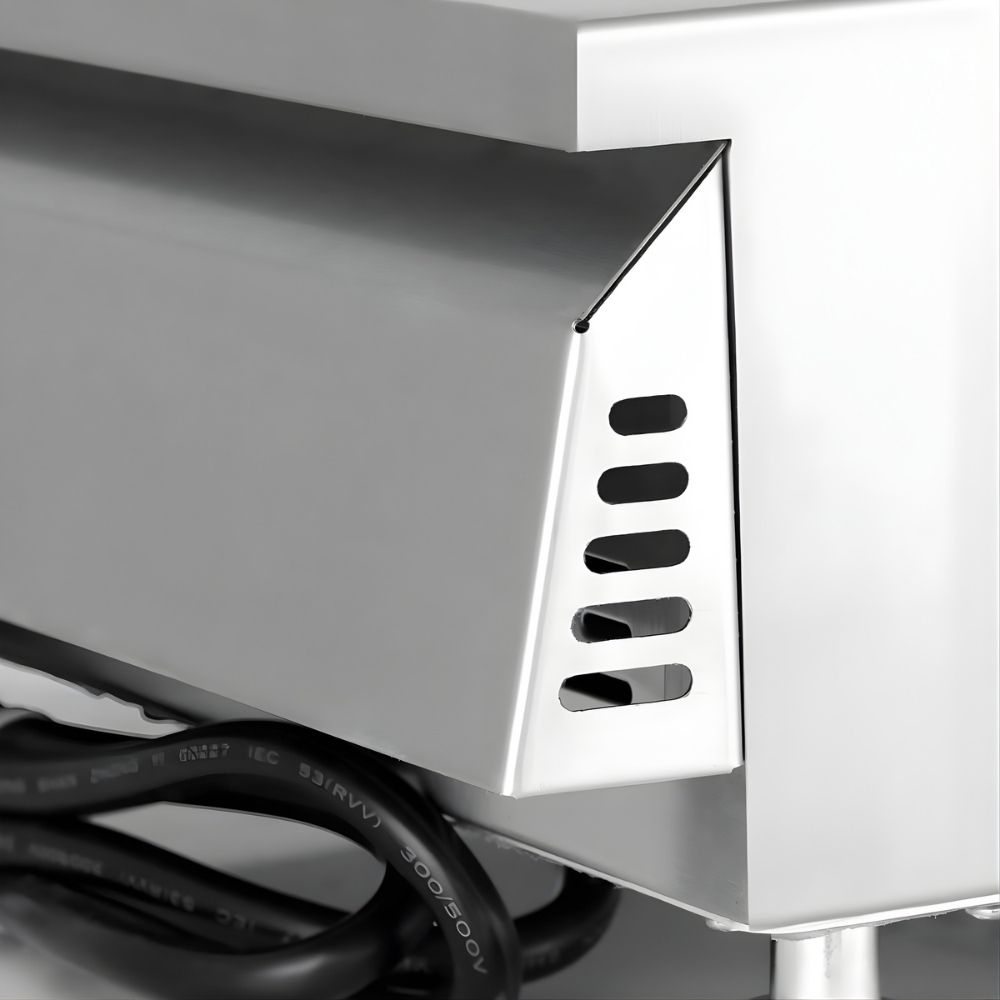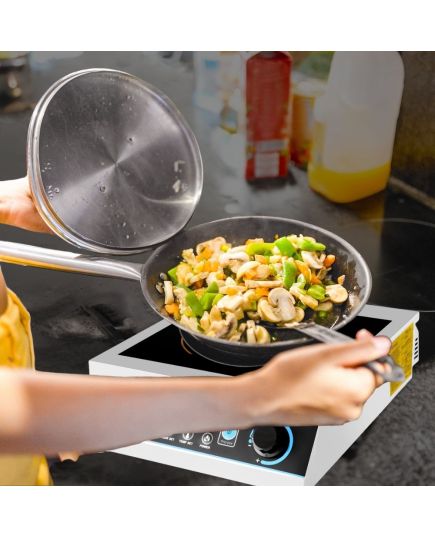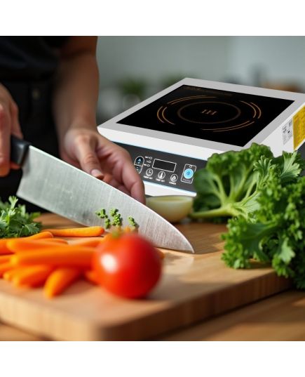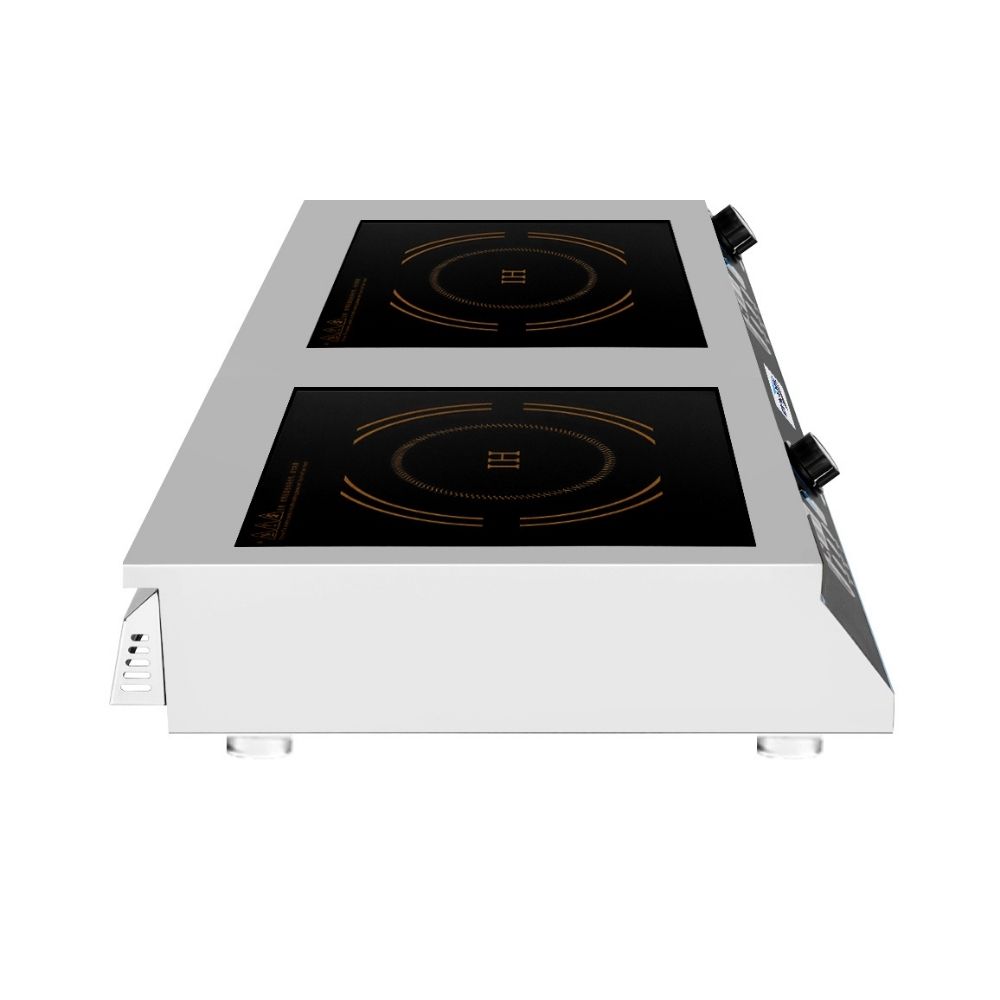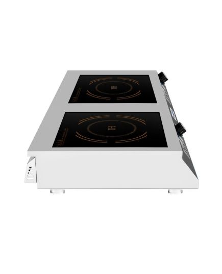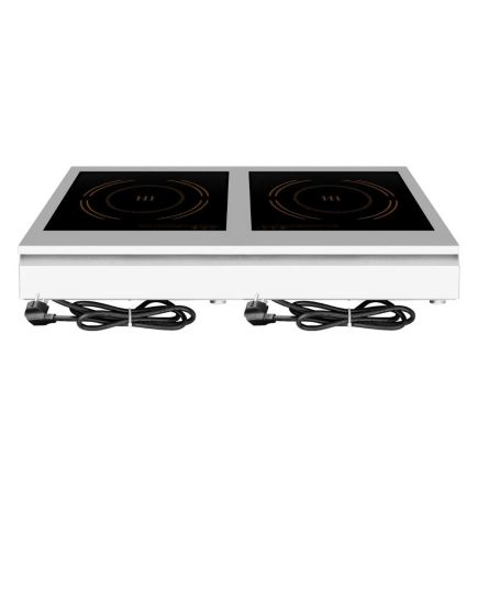 Οικονομική επαγωγική εστία με επίπεδη μαύρη επιφάνεια γυαλιού crystle πάχους 4mm. Πηνίο 32cm με μαγνητική λωρίδα 21cm και σύστημα προστασίας από την υπερθέρμανση. Εύρος θερμοκρασίας 70°C-280°C. Ισχύς πλατώ-εστίας 3500Wx2. Τροφοδοσία πλατώ-εστίας 230V/50Hz. Επιφάνεια ψησίματος ø32x2. Χρονοδιακόπτης 0-120min.