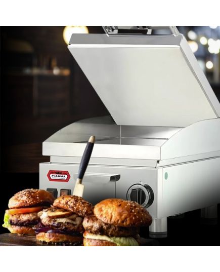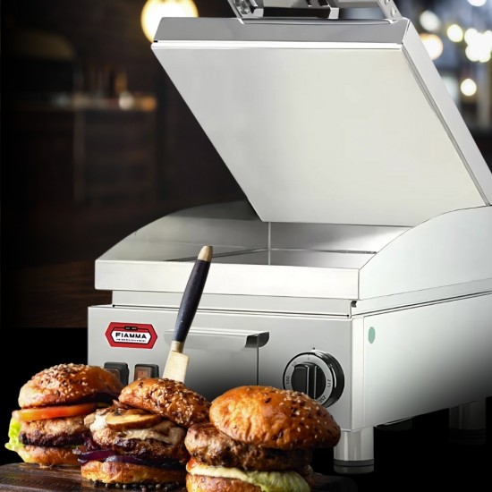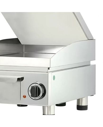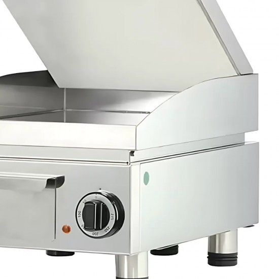 Ηλεκτρικό γκρίλ που θερμαίνεται γρήγορα με εύρος θερμοκρασίας και 0-250 ºC. Η επιφάνειά του είναι κατασκευασμένη από inox και διαθέτει προστατευτικό κάλυμμα για το πιτσίλισμα κατά την διάρκεια του ψησίματος. Με στρογγυλεμένες γωνίες για γρήγορο και εύκολο καθάρισμα. Ο θερμοστάτης είναι με φωτεινή ένδειξη.