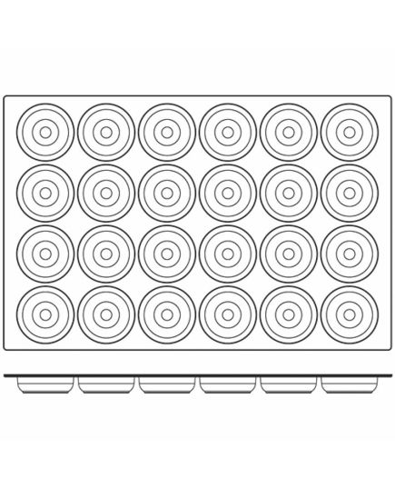 63106 (code) Η φόρμα σιλικόνης Donuts 133ml ref. SQ059 Silikomart είναι ιδανική για την δημιουργία πολλών επιδορπίων. Είναι ιδιαίτερα εύκαμπτη για εύκολο ξεφορμάρισμα ενώ παράλληλα το σχήμα της διατηρείται άθικτο ακόμη και μετά από πάρα πολλές χρήσεις. Είναι κατάλληλη για χρήση σε κατάψυξη, ψύξη και φούρνο και πλένεται σε πλυντήριο πιάτων. Έχει αντοχή σε θερμοκρασίες μεταξύ -60°C έως 230°C και είναι ιδανική για επαγγελματική χρήση. Δημιουργεί 24 γλυκά φ8,5cm, ύψους 2,9cm, 133ml.