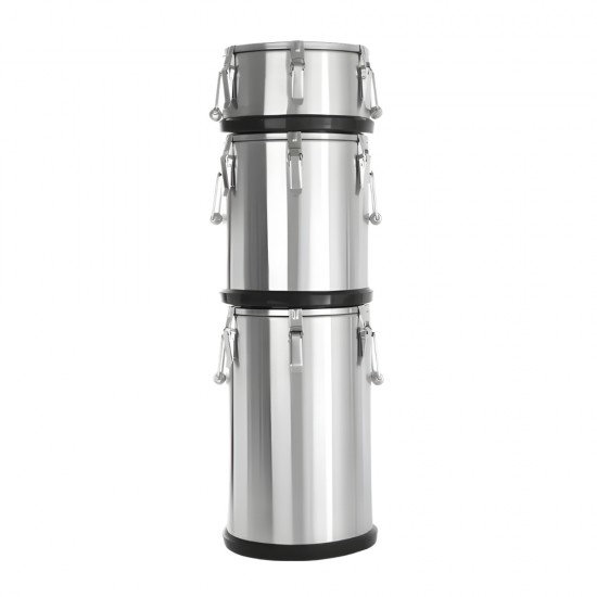 Ισοθερμικό δοχείο υψηλής αντοχής για την διατήρηση και την μεταφορά ποτών, αναψυκτικών και τροφίμων. Κατασκευασμένο εξ' ολοκλήρου από ανοξείδωτο ατσάλι, εγγυάται μέγιστη υγιεινή και μακροχρόνια ανθεκτικότητα σε κάθε χρήση. Τεχνολογία διπλών τοιχωμάτων με θερμομόνωση για να διατηρεί τα περιεχόμενα ζεστά για 6-8 ώρες και κρύα για 4-6 ώρες. Το καπάκι διαθέτει ειδική φλάντζα σιλικόνης για απόλυτη στεγανότητα και βαλβίδα εξαέρωσης για εύκολο άνοιγμα, αποφεύγοντας την πίεση από τους υδρατμούς. Ο εργονομικός σχεδιασμός του περιλαμβάνει στιβαρά πλαϊνά χερούλια για άνετη μεταφορά, ενώ η λαστιχένια αντιολισθητική βάση προσφέρει σταθερότητα σε κάθε επιφάνεια. Αποτελεί την ιδανική λύση για την εστίαση, χώρους εκδηλώσεων, beach bar, pool bar, catering, πολυχώρους και άλλα.