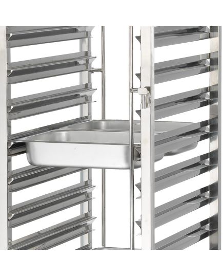 18121 (code) Ανοξείδωτο καρότσι τρόλεϋ μεταφοράς και αποθήκευσης για δίσκους λεκάνες GN.