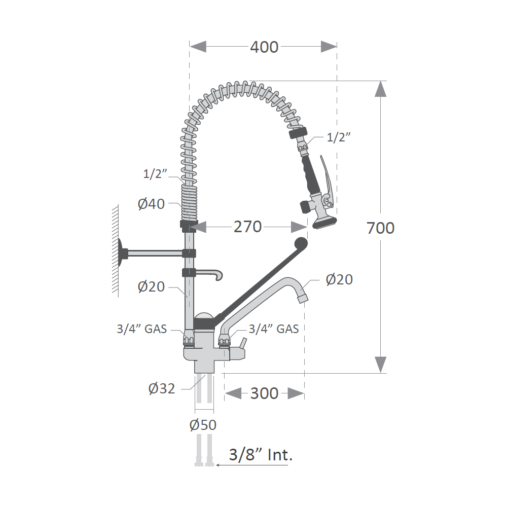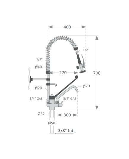 - Τύπος: Καταιωνιστήρας (Grifo Ducha / Pre Rinse Faucet)