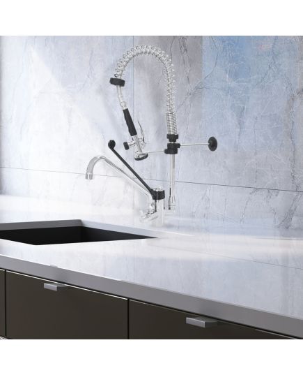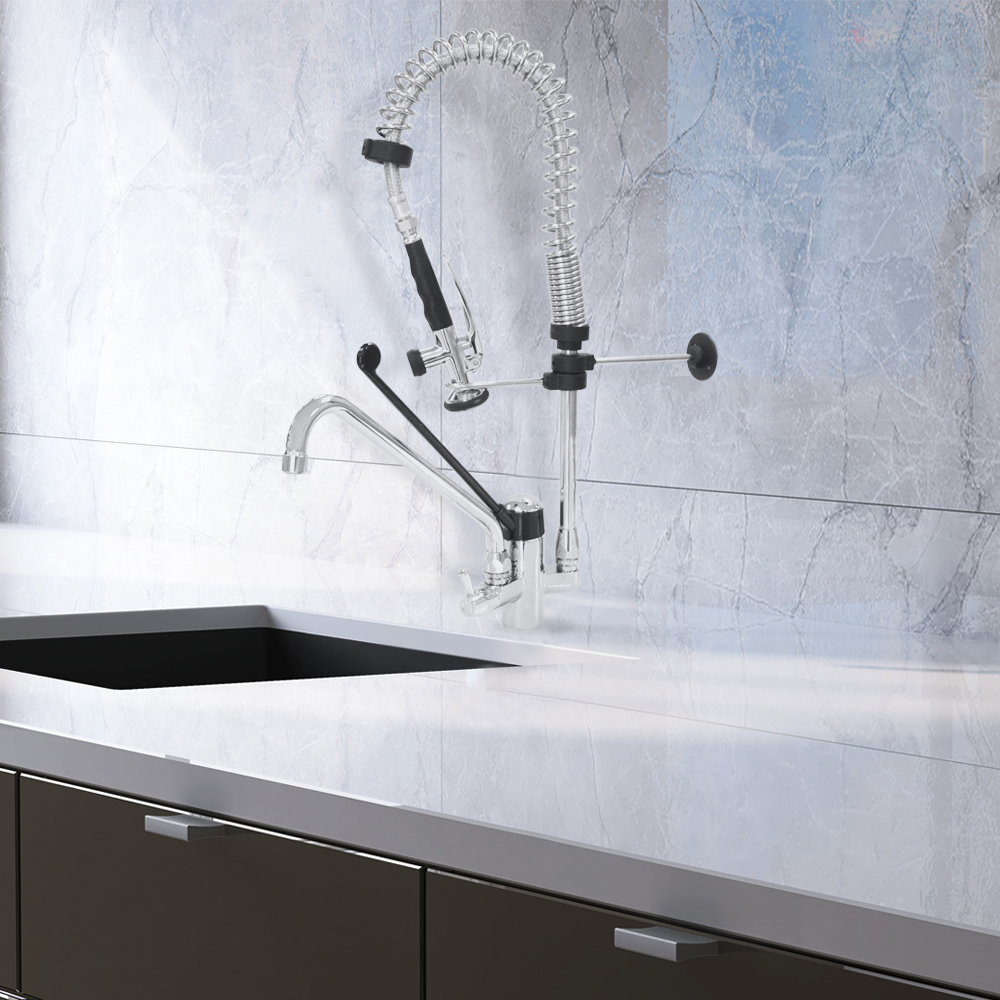 Σε ένα περιβάλλον έντονης εργασίας, ο σωστός pre rinse καταιωνιστήρας κάνει τη διαφορά. Ο ZN-5-G προσφέρει άμεσο και ελεγχόμενο ψεκασμό νερού για αποτελεσματική απομάκρυνση υπολειμμάτων πριν το πλύσιμο. Ο εργονομικός λεβιές επιτρέπει εύκολο χειρισμό, ενώ η πρόσθετη βρύση δίνει ευελιξία για γρήγορη πλήρωση δοχείων ή χρήση τρεχούμενου νερού χωρίς ενεργοποίηση του ντους.