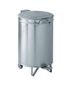 Κάδος απορριμμάτων ανοξείδωτος 100 lt με πεντάλ Χαρακτηριστικά Διαστάσεις ( Δ x Y) σε mm:  480 x 700 Κατασκευή εξ΄ολοκλήρου από  ανοξείδωτο χάλυβα  AISI 304 πάχους 0,8 mm Ποδοκίνητο ή χειροκίνητο άνοιγμα Π2 ρόδες περιστρεφόμενες Ø76 mm και 2 στηρίγματα σταθεροποίησης