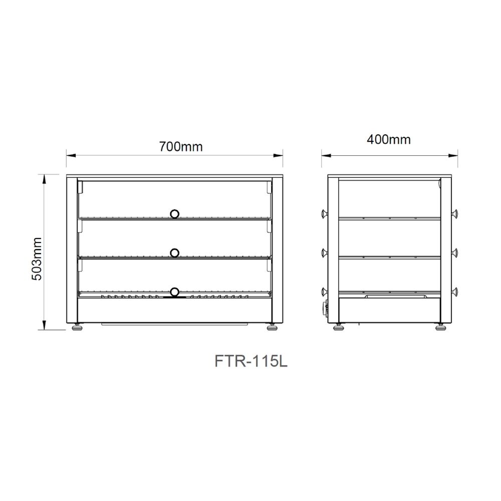 Βιτρίνα θερμαινόμενη επιτραπέζια 115lt 70xΥ50cm FTR-115L Dynamic