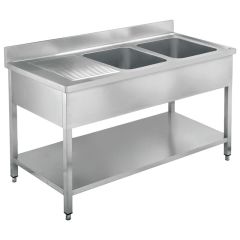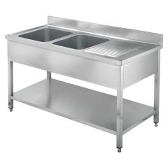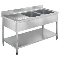 40552 (code) Λάντζα ανοιχτή LAE2 - 160 Γούρνες: 2 34x37x15cm Διαστάσεις: 160x60x85cm Υλικό: Ανοξείδωτο AISI 304 Βάρος: 51kg Ρυθμιζόμενα πόδια καθ ύψος Ράφι αντοχής Με βούλες inox αποστράγγισης