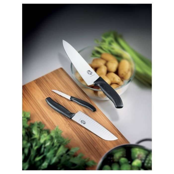 Το μαχαίρι πολλαπλών χρήσεων της Ελβετικής εταιρίας Victorinox , με ίσια λεπίδα και μυτερή άκρη, είναι ένα εξαιρετικά εύχρηστο μαχαίρι. Ιδανικό για να κόβει, να ξεφλουδίζει και τεμαχίζει μικρά φρούτα και λαχανικά. Διαθέτει επίσης αντιολισθητική και εργονομική λαβή για άνετο και σταθερό κόψιμο. Οι λάμες της σειράς είναι εξαιρετικά ανθεκτικές & αιχμηρές, προσφέροντας υψηλές επαγγελματικές επιδόσεις, χωρίς να είναι πολύ σκληρές κάνοντας το ακόνισμα ευκολότερο αλλά και απαραίτητο σε πιο αραιά χρονικά διαστήματα. Τα προϊόντα Victorinox είναι πρακτικά, έχουν διάρκεια και λειτουργική αισθητική. Κατάλληλο για πλύσιμο στο πλυντήριο πιάτων.