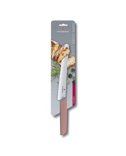 Μαχαίρι ψωμιού-ζαχαροπλαστικής 22cmοδοντωτό ροζ λαβή Swiss Modern -6.9076.22W5B- Victorinox