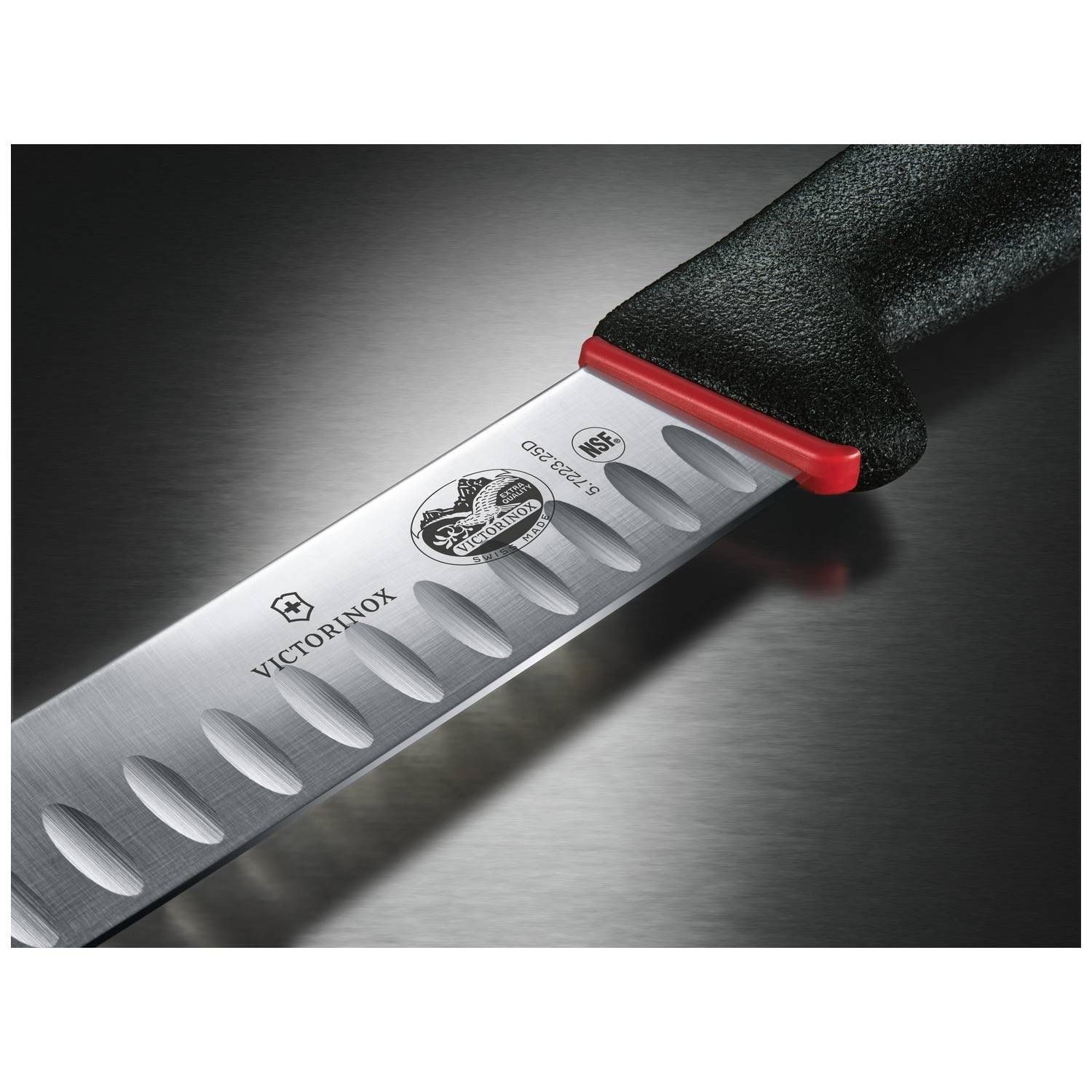 50809 (code) Μαχαίρι σφαγής με καμπύλη στενή λάμα και αυλακώσεις 25 εκατ. λαβή Fibrox Dual Grip 5.7223.25D Victorinox