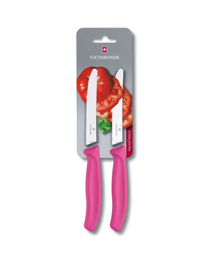Μαχαιράκια κουζίνας 11cm στρογγυλά οδοντωτά ροζ Σετ 2 τμχ Swiss Classic -6.7836.L115B- Victorinox
