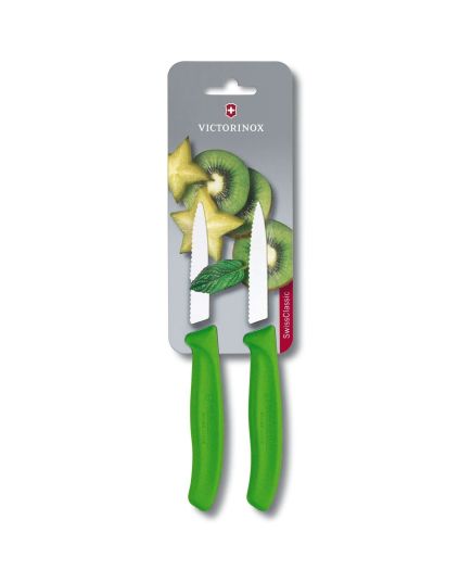 Μαχαιράκια κουζίνας 8cm οδοντωτά πράσινα Σετ 2 τμχ Swiss Classic -6.7636.L114B- Victorinox