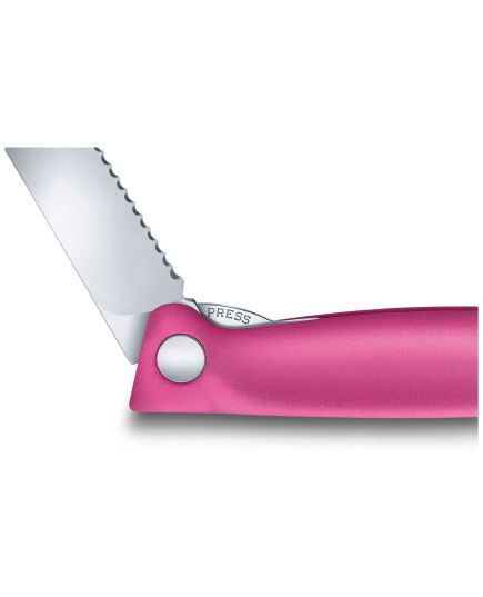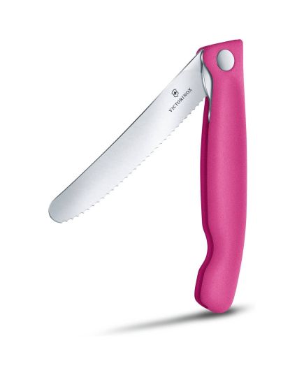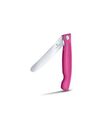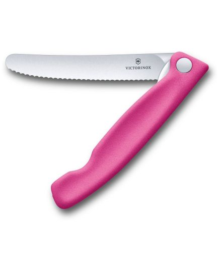 Μαχαίρι κουζίνας 11cm στρογγυλό οδοντωτό ροζ λαβή αναδιπλούμενο Swiss Classic -6.7836.F5B- Victorinox