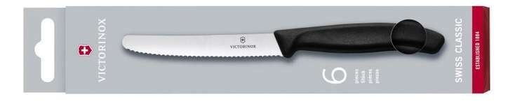 Μαχαίρια κουζίνας 11cm στρογγυλά οδοντωτά μαύρη λαβή Σετ 6 τμχ Swiss Classic -6.7833.6- Victorinox