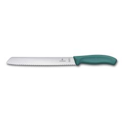 50620 (code) Μαχαίρι ψωμιού 21cm πράσινη λαβή Swiss Classic 6.8636.21L4B Victorinox Το μαχαίρι ψωμιού της Ελβετικής εταιρίας Victorinox είναι ιδανικό για όλα τα τρόφιμα με κρούστα, καθώς η οδοντωτή του λάμα επιτρέπει στο μαχαίρι να διαπεράσει την εξωτερική κρούστα χωρίς να τη...