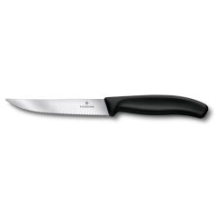 50574 (code) Μαχαίρι steak οδοντωτό 12cm Gourmet 6.7933.12 Victorinox Το Μαχαίρι steak της Ελβετικής εταιρίας Victorinox , είναι ιδιαίτερα αιχμηρό για εύκολο κόψιμο της μπριζόλας και όχι μόνο. Διαθέτει επίσης αντιολισθητική και εργονομική λαβή μαύρου χρώματος, για άνετη χρήση. Οι λάμες της...