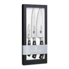 50590 (code) Μαχαίρια μονοκόμματα σετ 3 τμχ σε συσκευασία δώρου Grand Maitre 7.7243.3 Victorinox Τα μαχαίρια της Ελβετικής εταιρίας Victorinox , είναι ιδανικά για τους επαγγελματίες Chef αλλά και τους έμπειρους ερασιτέχνες μάγειρες. Κάθε μαχαίρι σε αυτή τη σειρά είναι μονοκόμματο, έχει...