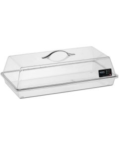 33304 (code) Βιτρίνα με δίσκο και καπάκι Roll Top GN 1/1 BO019 Υλικό: Πολυκαρμονάτ PC Ανοιγόμενο καπάκι roll top με χερούλι Διαστάσεις: 54,5x33x20,5Hcm