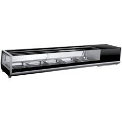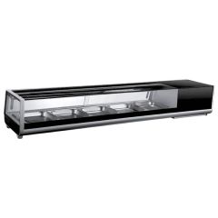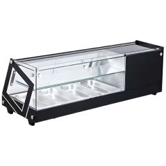 Dynamic FS-52Z Sushi bar ψυχόμενη επιτραπέζια βιτρίνα με 5 θέσεις Ψυχόμενη επιτραπέζια βιτρίνα για sushi με 5 θέσεις και φωτισμό LED στην κορυφή. Με ψηφιακό ρυθμιστή θερμοκρασίας με οθόνη και συρόμενες πόρτες. Γυάλινη καμπυλωτή πρόσοψη και εξατμιστής με λεκανάκι στο πάνω μέρος για τη συλλογή...