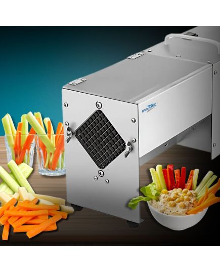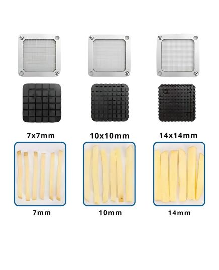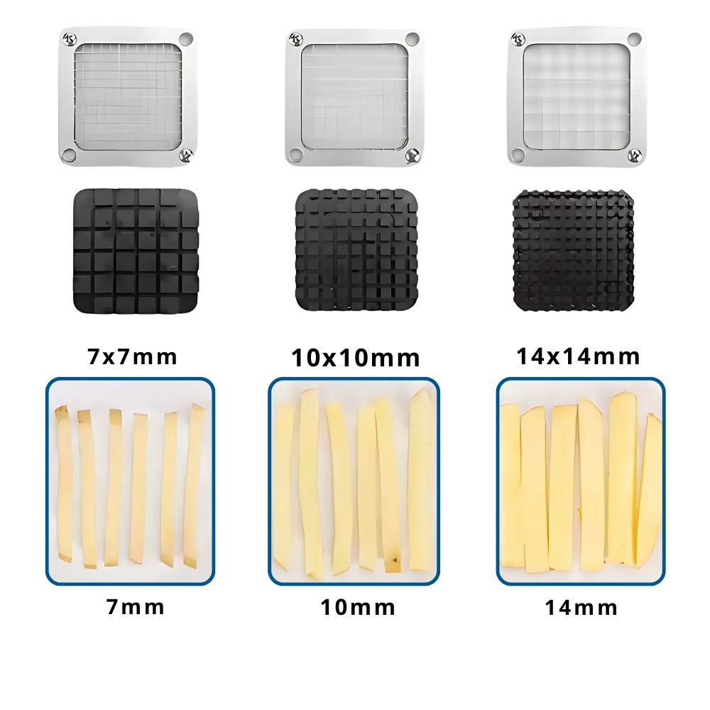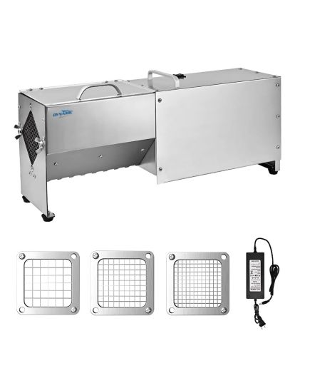Εύχρηστη συσκευή βαρέως τύπου. Κόβει σε 3 διαφορετικά μεγέθη με μαχαίρι 7mm, 10mm και 14mm. Με αντιολισθητικό πόδι, κατασκευασμένο από καουτσούκ για να σταθεροποιεί όλο το μηχάνημα. Κατασκευασμένο από ανοξείδωτο ατσάλι για να εγγυάται την αντοχή του στη φθορά από το νερό ή τα όξινα-αλκαλικά τρόφιμα. Εύκολο στη χρήση, εύκολο στο καθάρισμα, με διακόπτη ενός κουμπιού, μπορεί εύκολα να ψιλοκόψει τα τρόφιμα, με λίγη δύναμη. Το μηχάνημα μπορεί να χρησιμοποιηθεί για την κοπή φρούτων και λαχανικών μεσαίου μεγέθους, όπως πατάτα, κολοκυθάκια, κρεμμύδι, αγγούρι, καρότο, μήλο και άλλα.