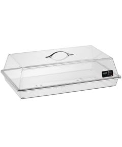 33314 (code) Βιτρίνα PC με καπάκι και δίσκο SET BO355 Διαστάσεις: 55x33x17cm Υλικό: Polycarbonate