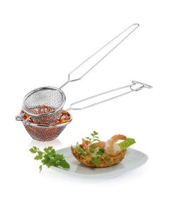 60787 (code) Σήτα διπλή inox για σχήμα φωλιάς φ10cm ref. 646601 Hendi. Με συρμάτινη λαβή και κλιπ σταθεροποίησης. Υλικό: Ανοξείδωτο ατσάλι Κατάλληλο για πλυντήριο πιάτων Διαστάσεις: ø100x390mm