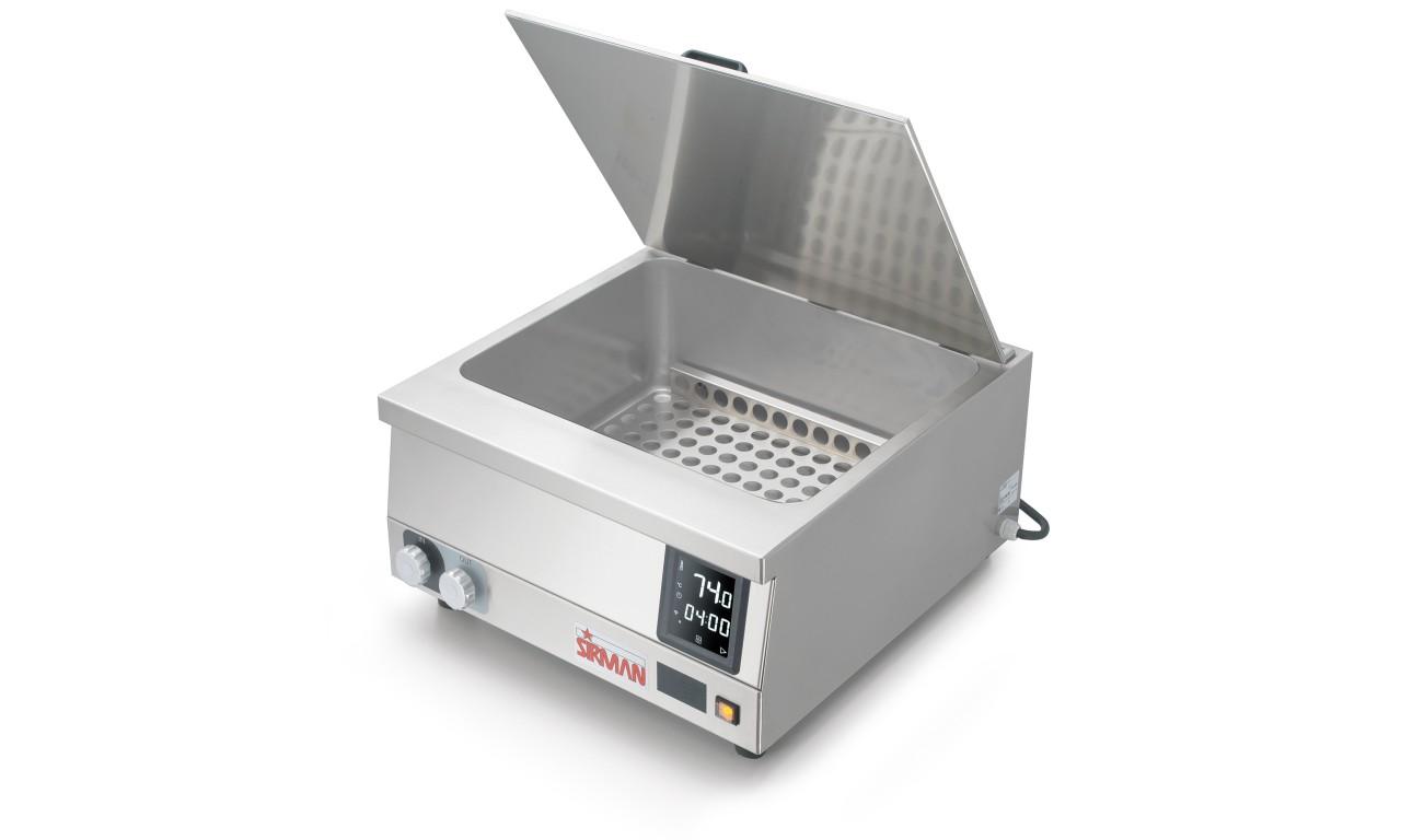 Ισχυρή συσκευή μαγειρέματος σε κενό αέρος που χρησιμοποιεί σύστημα κυκλοφορίας νερού έξω από τη δεξαμενή, ώστε να μπορεί να εκμεταλλευτεί όλο τον διαθέσιμο χώρο της χωρητικότητας της δεξαμενής των 70 λίτρων.