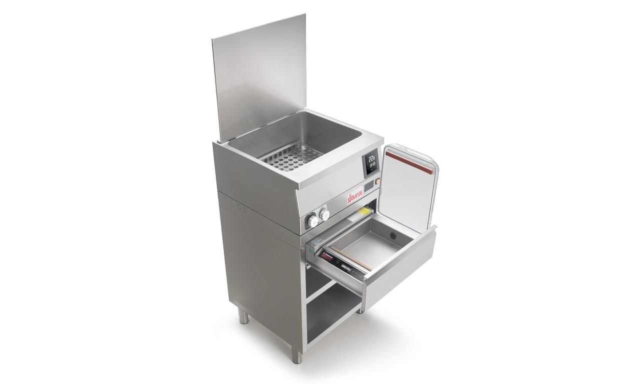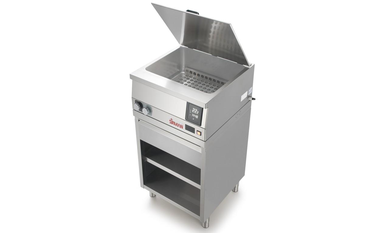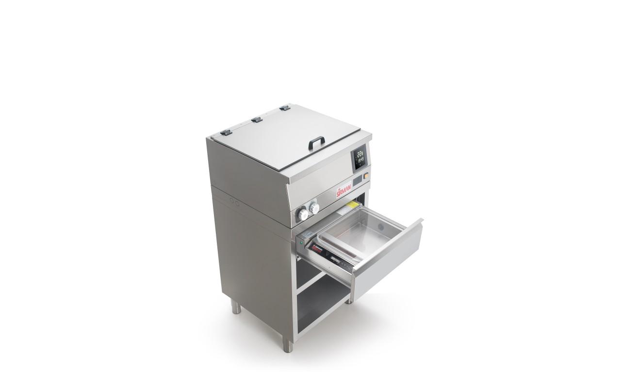 Ισχυρή συσκευή μαγειρέματος σε κενό αέρος που χρησιμοποιεί σύστημα κυκλοφορίας νερού έξω από τη δεξαμενή, ώστε να μπορεί να εκμεταλλευτεί όλο τον διαθέσιμο χώρο της χωρητικότητας της δεξαμενής των 70 λίτρων.