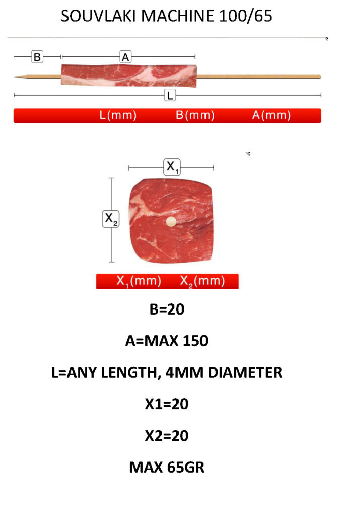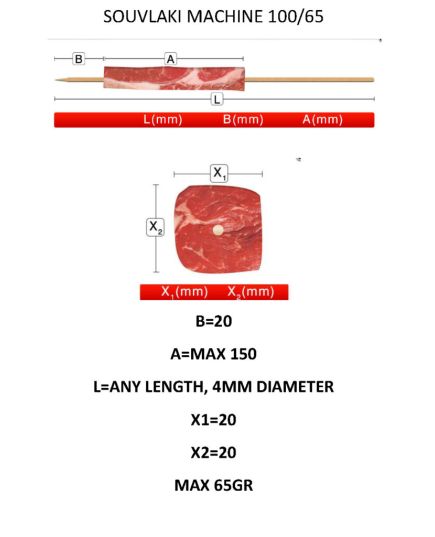 10412 (code) Σουβλακομηχανή χειρός για 100 τετράγωνα σουβλάκια με βάρος 65gr ανα τεμάχιο
