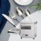 77772 (code) Αυτόματο στεγνωτήριο & γυαλιστικό για μαχαιροπίρουνα AS MP STAR LAT Hyppocampus Ιταλίας. Τα μαχαιροπίρουνα βυθίζονται σε ζεστούς μικροκόκκους μέσα στη δεξαμενή και σε λίγα δευτερόλεπτα στεγνώνουν αποφεύγοντας την εμφάνιση λευκών σημαδιών ενώ απολυμαίνονται χάρη στη λάμπα UV. Αποβάλλονται σε ένα καλάθι και είναι έτοιμα για χρήση στο τραπέζι. Επαγγελματική συσκευή μεγάλης αντοχής, κατασκευασμένη από ανοξείδωτο ατσάλι, με θερμαινόμενη αντίσταση και ένδειξη θερμοκρασίας. Αυτόματη λειτουργία με απόδοση 2500τεμ/ώρα, λάμπα UV για απολύμανση και μεγάλη απορροφητικότητα μέσω μικροκόκκων ειδικής άμμου. Εξοικονομεί χρόνο και χρήμα, δεν χρειάζεται ειδική εγκατάσταση και συντήρηση. Φόρτωση από τη δεξιά πλευρά.
