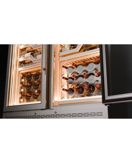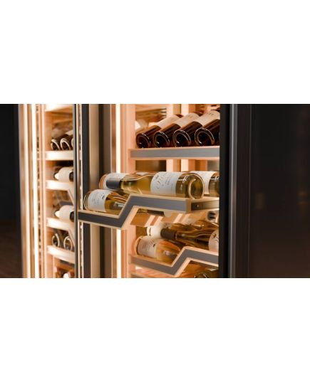 Premium συντηρητής κρασιών 144 φιαλών με 2 ζώνες 5–20°C, UV προστασία, inverter ψύξη, συρόμενα ράφια ξύλου/inox και συμβατότητα Vinotag®. Κατάλληλος για οικιακή και επαγγελματική χρήση.