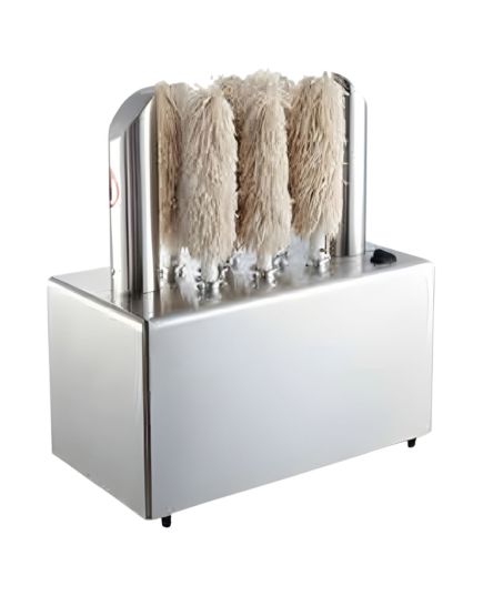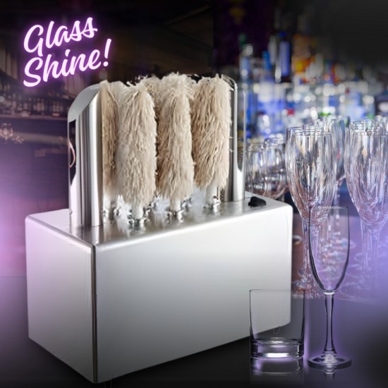 Επαγγελματικό γυαλιστικό ποτηριών με 8 βούρτσες. Κατασκευασμένο από στιβαρό ανοξείδωτο ατσάλι, προσφέρει αντοχή και κορυφαία υγιεινή. Οι βούρτσες του, από ανθεκτικό υλικό με πιστοποίηση τροφίμων, περιποιούνται κάθε τύπο ποτηριού, εξαλείφοντας στίγματα και θαμπάδες. Το ενσωματωμένο ακροφύσιο θερμού αέρα εξασφαλίζει αστραπιαίο και ομοιόμορφο στέγνωμα, ενώ ο απλός διακόπτης On-Off επιτρέπει την άμεση χρήση από το προσωπικό. Είναι σχεδιασμένο για να προσαρμόζεται σε διάφορα μεγέθη ποτηριών, προσφέροντας τέλεια λάμψη σε δευτερόλεπτα. Αποτελεί την ιδανική επένδυση για εστιατόρια και bar, συνδυάζοντας την άψογη παρουσίαση με τη σημαντική εξοικονόμηση χρόνου.