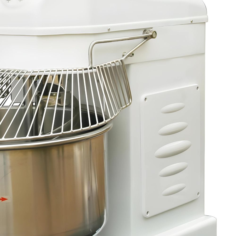 Ανοξείδωτος κάδος και αναδευτήρες από ανοξείδωτο ατσάλι. Σταθερό μηχάνημα με χαμηλά επίπεδα θορύβου. Τριφασικό, 380V, 50HZ/60HZ, 2.800/3.600W. Χωρητικότητα κάδου 66 λίτρα και μίγματος 25 κιλά. Ιδανικό για πιτσαρίες, φούρνους, εστιατόρια. Κατάλληλο για ψωμί, κρουασάν, πίτσα.