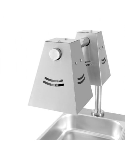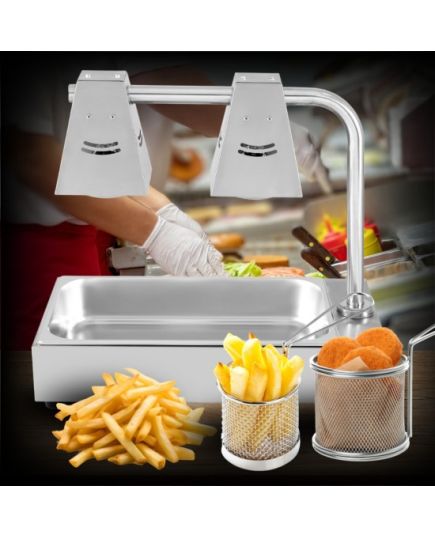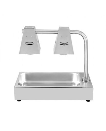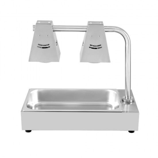 Επαγγελματικός Θερμαντήρας πατάτας κατασκευασμένος από ανοξείδωτο ατσάλι 201 για εύκολη εσωτερική και εξωτερική συντήρηση. Διαθέτει βάση που περιλαμβάνει ένα βαθύ δοχείο για να διατηρούνται φρέσκες οι τηγανιτές πατάτες, με ασφαλή και υγιεινό τρόπο. Με 2 λάμπες θερμότητας και με δοχείο GN1/1 διαστάσεων 65mm με πάχος 0,7mm.