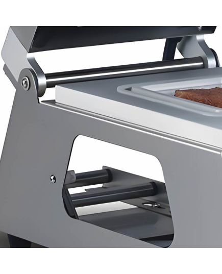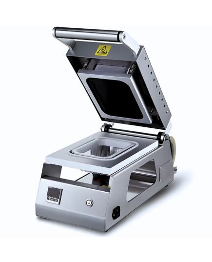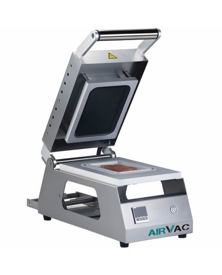 78041 (code) Θερμοσυγκολλητικό σκαφιδίων DS-4 AirVac. Επιτραπέζιο μηχάνημα συσκευασίας σε κουτιά φρέσκων προϊόντων όπως νωπό κρέας, έτοιμα μαγειρεμένα φαγητά, προπαρασκευασμένα τρόφιμα, πουλερικά, φρούτα, λαχανικά, ξηροί καρποί κ.α. Κατασκευασμένο από ανοξείδωτο ατσάλι 304 και με καλούπι μπορεί να αντικατασταθεί εύκολα και γρήγορα. Διαθέτει ηλεκτρονικό σύστημα ελέγχου θερμοκρασίας με πολύ απλή και φιλική λειτουργία. Τα καλούπια μπορούν να προσαρμοστούν σύμφωνα με τις απαιτήσεις της επιχείρησης.