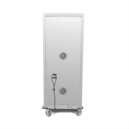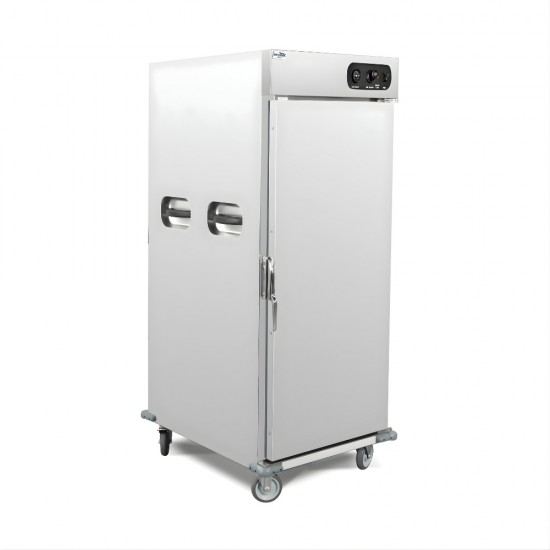Ο τροχήλατος θάλαμος FW-11S είναι κατασκευασμένος από υψηλής ποιότητας ανοξείδωτο χάλυβα τύπου 201, εξασφαλίζοντας ανθεκτικότητα και εύκολο καθαρισμό. Διαθέτει λειτουργία υγρασίας και ρυθμιζόμενη θερμοκρασία από 30°C έως 85°C, προσφέροντας ιδανικές συνθήκες για τη διατήρηση της ποιότητας των φαγητών. Χάρη στην ειδική μόνωση, μπορεί να διατηρήσει τη θερμοκρασία στους 60°C για αρκετή ώρα σε περίπτωση διακοπής ρεύματος, εξασφαλίζοντας τη συνέχεια της εξυπηρέτησης. Το άνοιγμα της πόρτας κατά 90°, σε συνδυασμό με τη σχεδίαση για εύκολη τοποθέτηση και αφαίρεση δοχείων GN, καθιστά τη χρήση του εξαιρετικά πρακτική. Επιπλέον, τα προστατευτικά γωνιακά λάστιχα προσφέρουν πρόσθετη ασφάλεια και αντοχή. Είναι η ιδανική λύση για catering, μπουφέδες και εκδηλώσεις, όπου τα τρόφιμα πρέπει να παραμένουν ζεστά και φρέσκα για παρατεταμένο χρονικό διάστημα. Ράφια FW-11S: 11GN 2/1& 22GN 1/1