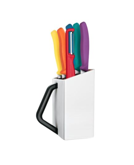 Μπλοκ λευκό 5 μαχαιριών και αποφλοιωτή με χρωματιστές λαβές Swiss Classic -6.7126.6C1- Victorinox