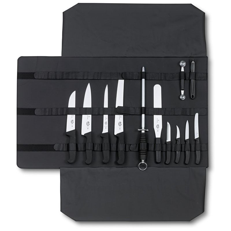 Η νέα θήκη μαχαίριών της Victorinox είναι κατασκευασμένη από PVC σε χρώμα σκούρο γκρί και πωλείται άδεια, χωρίς μαχαίρια. Με τους ιμάντες velcro που διαθέτει προσφέρει μεγάλη ευελιξία στην τοποθέτηση των μαχαιριών και αρκετή χωρητικότητα για να προσαρμόζεται στις ανάγκες σας. Εξυπηρετεί ιδιαίτερα τον επαγγελματία για τη σωστή και ασφαλή μεταφορά των μαχαιριών του.