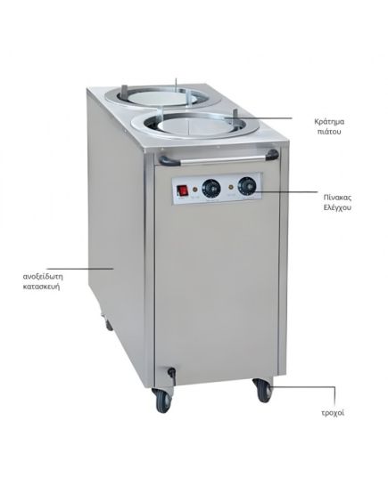 Τρόλεϊ dispenser πιάτων διπλό θερμαινόμενο 45x91x93 PW-102 Dynamic