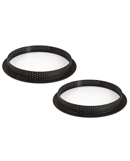 63164 (code) Το τσέρκι Tarte Ring Round φ150x20mm σετ 2τεμ ref. 52.244.20.0165 Silikomart αποτελείται από 2 δαχτυλίδια από μη παραμορφώσιμο σύνθετο θερμοπλαστικό υλικό, κατάλληλο για χρήση στο φούρνο. Η ενσωματωμένη εκτεταμένη άκρη του δακτυλίου δημιουργεί σταθερότητα. Η διάτρητη δομή τους προσφέρει καλύτερο ψήσιμο καθώς βοηθούν στην γρήγορη εξάτμιση της υγρασίας της ζύμης. Διατίθεται σε διάφορα μεγέθη, αποτελείται από ανθεκτική σιλικόνη η οποία αντέχει σε θερμοκρασίες μεταξύ -30°C και 180°C και είναι κατάλληλα και για επαγγελματική χρήση.